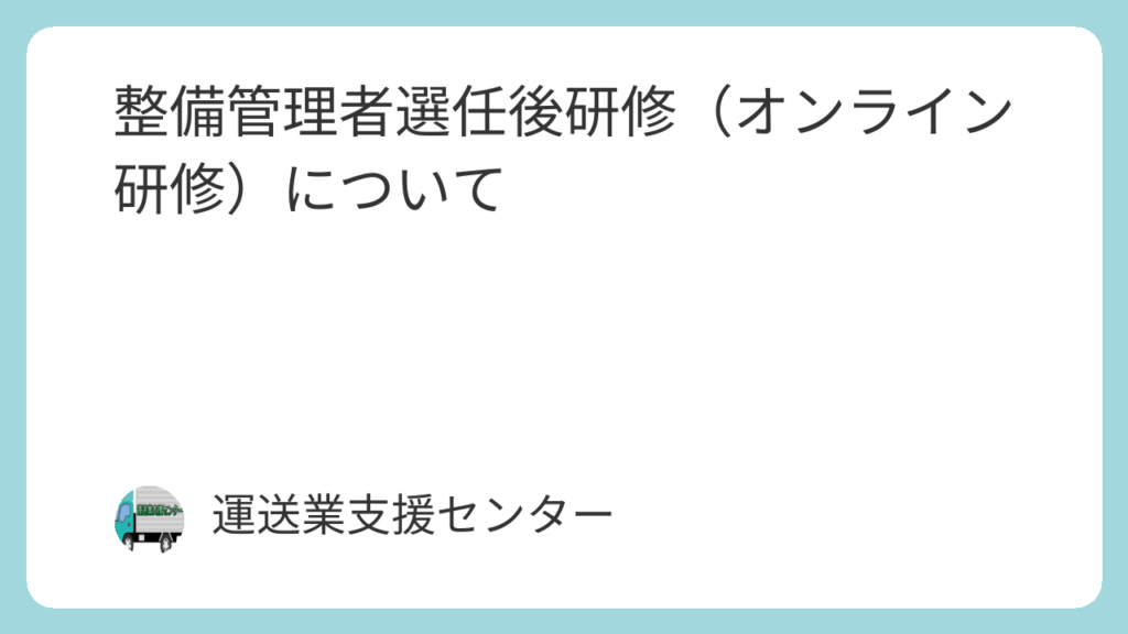 整備管理者選任後研修 整備管理者選任後研修(オンライン研修)について