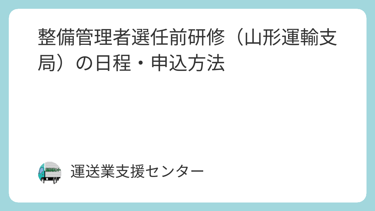 山形運輸支局の整備管理者選任前研修の詳細は、山形運輸支局のホームページでご確認ください。