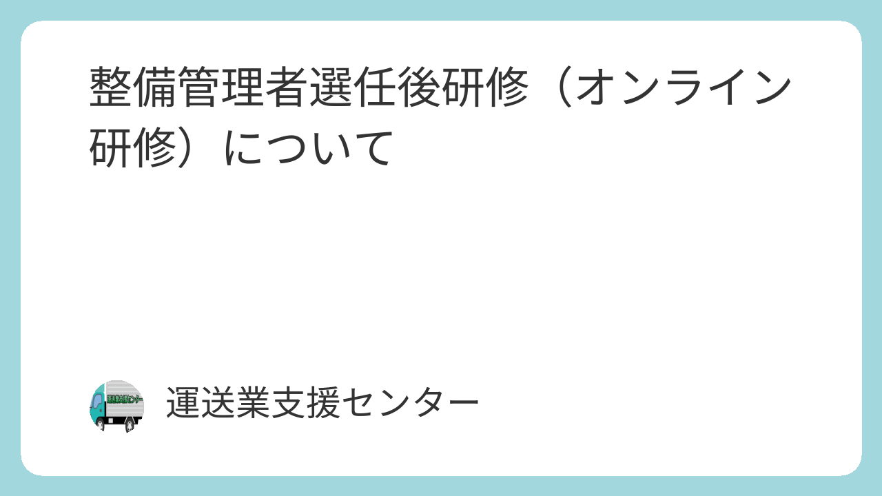 令和7年10月より整備管理者選任後研修をオンラインで受講できるようになりました。
