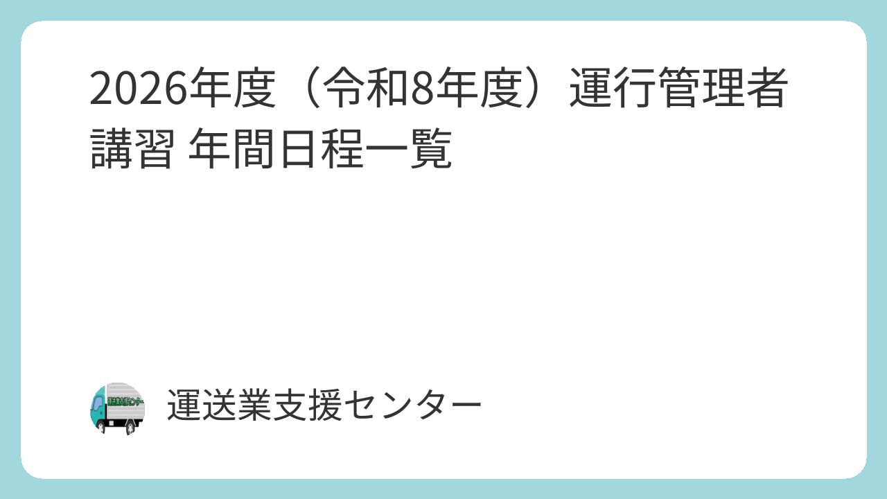 2026年度(令和8年度)運行管理者講習 年間日程一覧