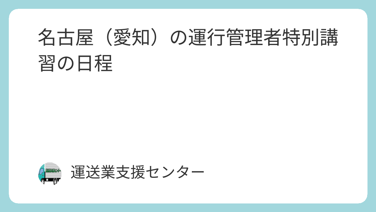 運行管理者特別講習の開催予定(NASVA名古屋主管支所)