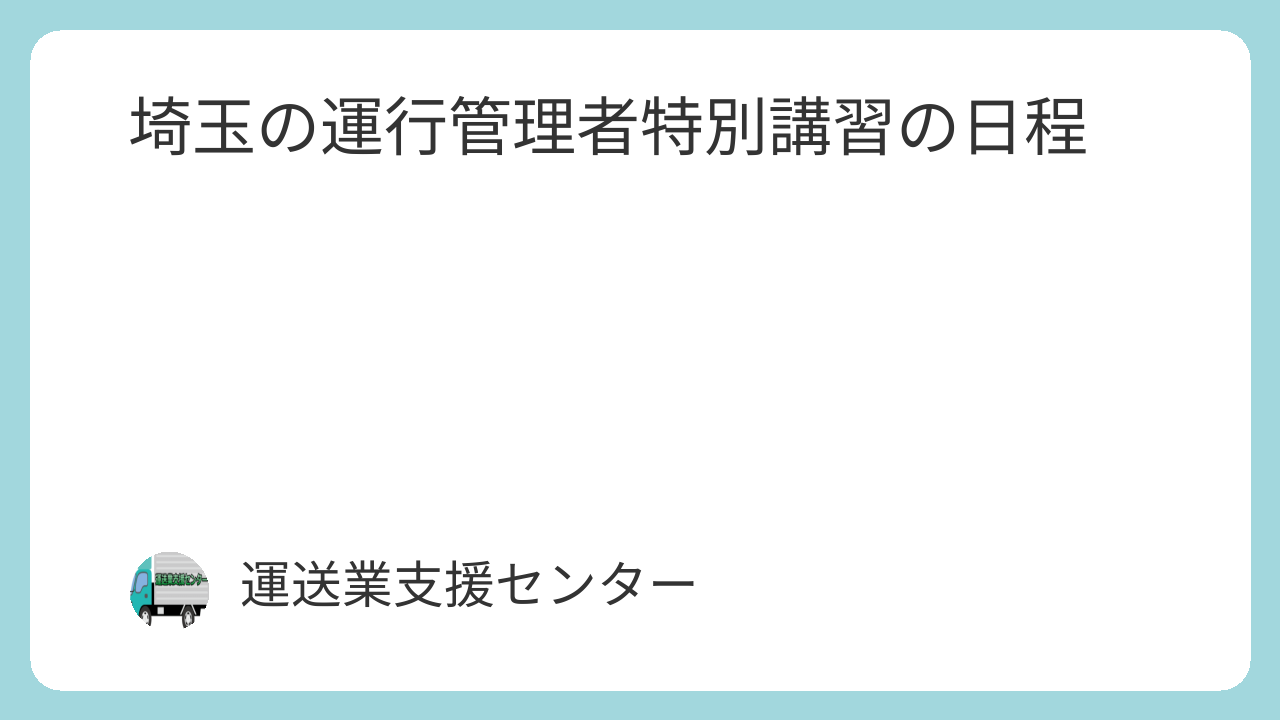 NASVA埼玉支所で行なわれる運行管理者特別講習の情報をお伝えします。